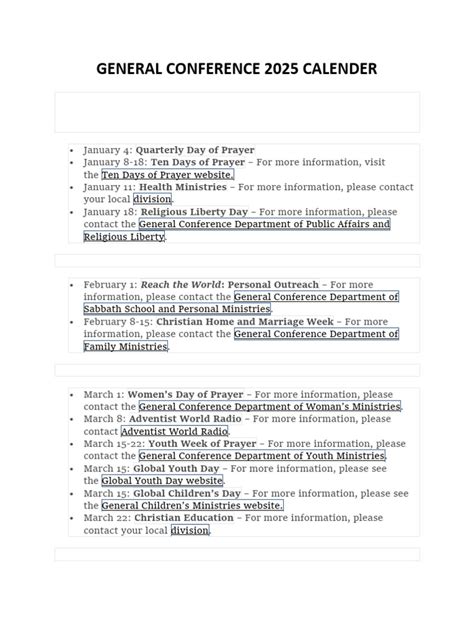Hey guys, are you ready to mark your calendars? We’re diving deep into everything you need to know about the Seventh-day Adventist General Conference Calendar for 2025 . It’s a huge deal for the Adventist community, bringing together members from all corners of the globe. This guide will break down the key events, important dates, and schedules you won’t want to miss. Get ready to explore the heart of Adventist gatherings, understand the significance of these meetings, and find out how you can be a part of it all. Let’s get started!