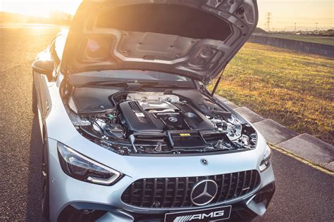 Now, let’s talk about what truly makes the AMG GT 63 tick: its engine. This is where the magic happens, folks. Under that long, sculpted hood lies a handcrafted 4.0-liter V8 biturbo engine. And when we say handcrafted, we mean it – each engine is built by a single technician, a testament to AMG’s commitment to precision and performance. In the GT 63, this powerhouse churns out a staggering 630 horsepower and 590 lb-ft of torque . Yes, you read that right. That kind of power translates into face-melting acceleration. We’re talking 0 to 60 mph in around 3.2 seconds. Let that sink in. This isn’t just fast; it’s warp-speed fast. The engine is mated to an AMG SPEEDSHIFT MCT 9-speed transmission, which is lightning-quick and incredibly responsive. It delivers power to all four wheels through the AMG Performance 4MATIC+ all-wheel-drive system, ensuring you have grip and traction no matter the conditions. But it’s not just about brute force; AMG has engineered this V8 to deliver a soundtrack that’s as thrilling as its performance. The exhaust note is deep, guttural, and utterly intoxicating, especially when you open it up. You can choose different drive modes, from a refined Comfort setting to a more aggressive Sport+ mode, which sharpens the throttle response, stiffens the suspension, and unleashes the full fury of the V8. The active exhaust system allows you to tailor the sound to your mood, whether you want to be a subtle cruiser or a roaring thunder. It’s an engine that feels alive, eager to rev, and always ready to push you back in your seat. For anyone who appreciates the raw, unadulterated thrill of a V8 engine, the AMG GT 63 is an absolute dream come true. It’s a symphony of power, precision, and auditory bliss that defines the AMG experience.
