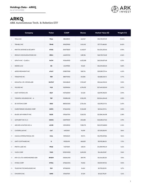 When we peer into the portfolio of the ARK Autonomous Technology & Robotics ETF (ARKQ) , what we’re really observing is a meticulously curated collection of companies that ARK Invest believes are not just participating in, but actively leading the charge in the development and deployment of autonomous technology and robotics . This isn’t a passive investment; it’s an active bet on the future, hand-picking firms that are pushing the boundaries across several interconnected themes. We’re talking about companies that are perfecting autonomous vehicles , making significant leaps in industrial robotics and automation, developing cutting-edge artificial intelligence (AI) and machine learning algorithms that power these intelligent systems, and even pioneering advancements in 3D printing and energy storage – technologies critical for enabling future autonomous solutions. The managers at ARK Invest aren’t afraid to take concentrated positions in companies they have high conviction in, meaning that each holding is expected to play a crucial role in realizing the fund’s ambitious vision. These aren’t necessarily today’s biggest names, but rather the innovators, often smaller or mid-cap firms, that are poised for exponential growth as their disruptive technologies gain wider adoption. The ARKQ ETF share price is therefore directly influenced by the collective success and innovation of these individual holdings. Investors in ARKQ are essentially getting a front-row seat to the unfolding technological revolution, with exposure to a diverse array of companies that are collectively building the infrastructure, software, and hardware for a truly autonomous world. It’s a testament to ARK’s commitment to finding the ‘next big thing’ rather than just riding on the coattails of the ‘last big thing’, offering a unique investment proposition for those with a strong belief in the transformative power of these emerging technologies.