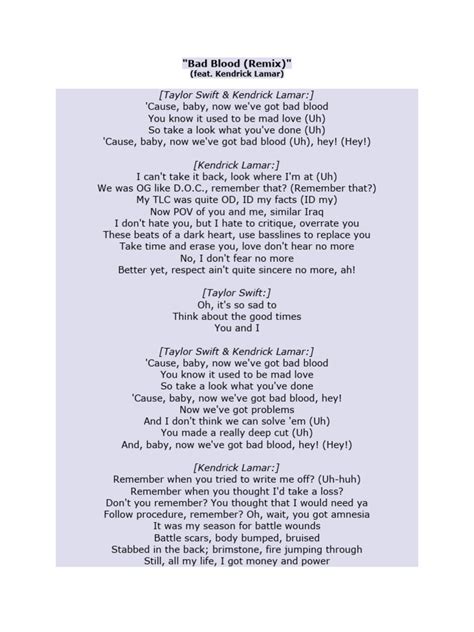 Analyzing the Lyrics: Unpacking the ‘Bad Blood’ Narrative