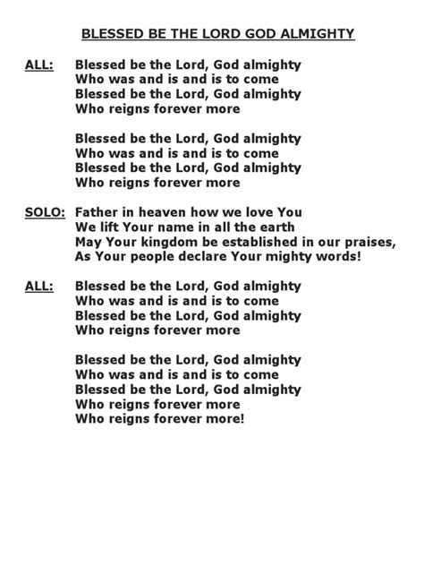Furthermore, this phrase is a cornerstone of communal worship. In churches, synagogues, and other places of spiritual gathering, declarations like “ Blessed be the Lord God Almighty ” are often sung or spoken together. This collective expression of praise strengthens the bonds of faith within a community and amplifies the worship experience. When people unite in declaring God’s greatness, there’s a palpable sense of shared devotion and spiritual energy. It’s a way for believers to stand together, united in their adoration and trust in God. This communal aspect reinforces individual faith and creates a powerful atmosphere of worship that can be incredibly uplifting and encouraging. Imagine a choir singing these words with full hearts – the resonance is incredible. It’s a reminder that we are not alone in our faith journey, and that together, our praise is even more powerful. This shared declaration becomes a testament to the community’s collective belief and reliance on God’s almighty power. The unity in praise is itself a blessing, fostering a sense of belonging and shared purpose among believers. It’s in these moments that the spiritual significance truly shines, as individuals feel part of something larger than themselves, all centered around the adoration of the divine.