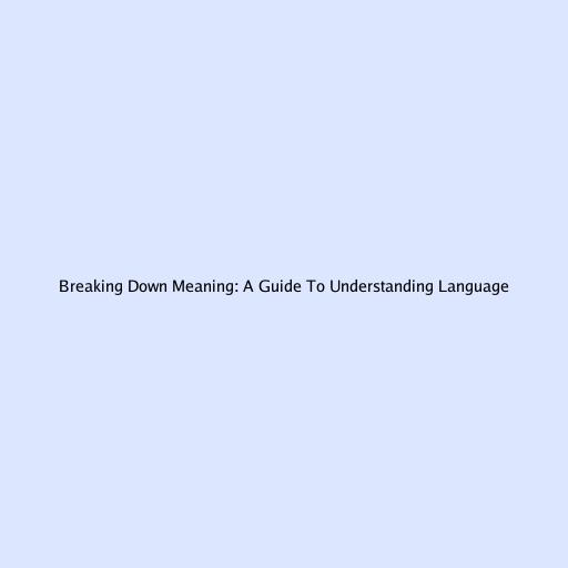 Breaking Down Meaning: A Guide To Understanding Language