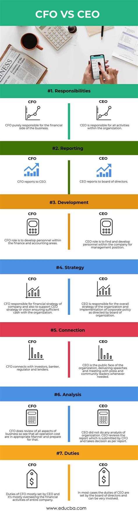 To really nail this down, let’s quickly summarize the key differences between the CEO and the CFO . It’s important to keep these distinctions clear because they represent different, yet complementary, focuses within the business. The CEO is primarily focused on the overall direction and strategy of the company. They are the visionaries, concerned with market position, competitive advantage, long-term growth, and stakeholder relations. Their decisions impact every facet of the organization, from product development to employee morale. They are the public face, the ultimate decision-maker, and responsible for the company’s success or failure on a broad scale. Their expertise typically lies in leadership, strategic thinking, market analysis, and operational management. On the other hand, the CFO is primarily focused on the financial health and management of the company. They are the financial stewards, concerned with profitability, cash flow, budgeting, financial planning, and risk management. Their decisions directly influence the company’s financial stability, investment strategies, and ability to fund its operations and growth initiatives. They are the guardians of the company’s assets and are responsible for its financial integrity. Their expertise lies in finance, accounting, economics, and financial analysis. While the CEO sets the destination, the CFO ensures the company has the financial resources and controls in place to reach it safely and efficiently. Think of it this way: the CEO asks, “Where are we going?” and the CFO asks, “Can we afford to go there, and how can we make the most money doing it?” Their timelines also differ; the CEO often thinks in terms of years or even decades for strategic planning, while the CFO might focus on quarterly and annual financial cycles, alongside long-term financial planning. Ultimately, these differences highlight their distinct but equally vital contributions to the business. One leads with vision, the other manages with financial acumen, and together they form the core leadership team driving organizational success.