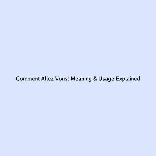 Comment Allez Vous: Meaning & Usage Explained