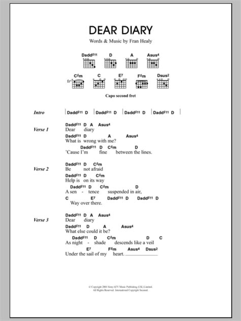 • Listen to the Song: Listen to the original recording of “Dear Diary” repeatedly. Pay attention to the strumming patterns, the chord changes, and the dynamics. Listening is one of the best ways to learn and internalize a song. This will help you understand the nuances of the song and improve your ability to play it accurately.