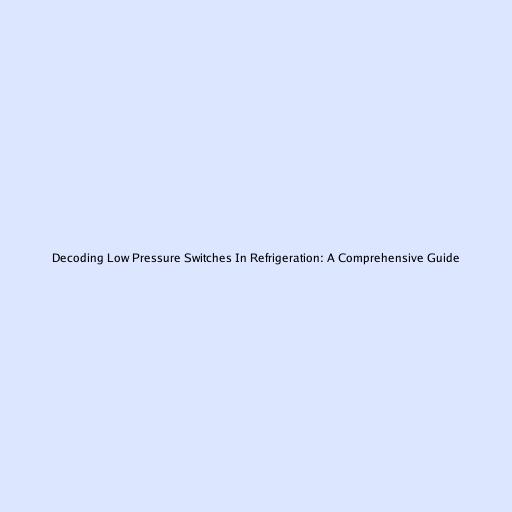 Decoding Low Pressure Switches In Refrigeration: A Comprehensive Guide