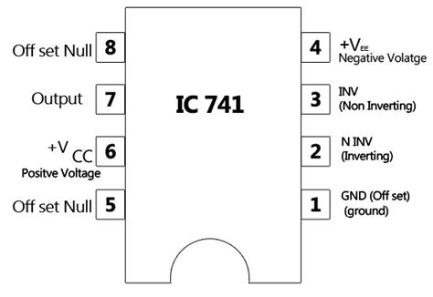 • Pin 1: Offset Null: This pin is used to fine-tune the output voltage of the op-amp. By connecting a potentiometer between this pin and pin 5 (Offset Null), you can compensate for any internal offsets and ensure a precise output.