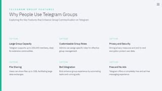 • Explore Telegram’s built-in search function.
