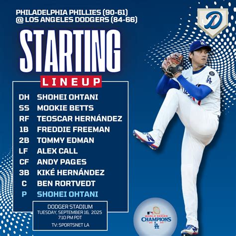 • MLB.com: MLB.com offers detailed information on all MLB teams, including the Dodgers. You can find up-to-date news, stats, and lineup information.