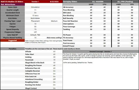 So, what exactly are IMR Hurricane Madden 24 Sliders ? Simply put, they are a set of customized gameplay sliders designed to fine-tune the various aspects of Madden 24, creating a more realistic, challenging, and enjoyable experience. Sliders control everything from the accuracy of passes and the effectiveness of running plays to the frequency of penalties and the impact of injuries. IMR Hurricane has meticulously crafted these sliders to address many of the common issues found in the default Madden 24 settings. Guys, the default settings can often feel too easy, too predictable, or just plain unrealistic. These sliders aim to provide a more authentic NFL simulation, making every game feel unique and every victory earned. They tweak the game’s AI, player performance, and overall gameplay dynamics, ensuring a balanced and engaging experience for both offensive and defensive play. The beauty of the IMR Hurricane Sliders lies in their ability to cater to different playstyles and skill levels. Whether you’re a seasoned Madden veteran or a newcomer to the series, these sliders can be adjusted to create a personalized experience that suits your preferences. It’s all about finding that sweet spot where the game is challenging enough to keep you engaged but not so difficult that it becomes frustrating. The goal is to make every game feel like a true NFL contest, with the ebb and flow of momentum, the thrill of close calls, and the satisfaction of hard-fought victories. These sliders are designed to address common complaints about the game, such as unrealistic player stats, broken gameplay mechanics, or a lack of variety in play calls. They also help to create more organic and unpredictable game scenarios, making it feel like you’re truly experiencing the ups and downs of a real NFL season. When you implement these IMR Hurricane Sliders , you’re not just changing a few numbers; you’re fundamentally altering the way the game is played and experienced.