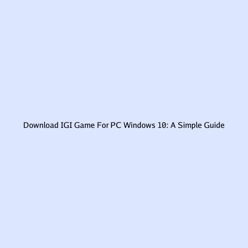 Download IGI Game for PC Windows 10: A Simple Guide