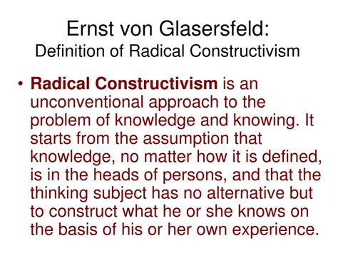Let’s dive into the fascinating world of Ernst von Glasersfeld , a name synonymous with radical constructivism . Guys, if you’re scratching your heads wondering what that even means, don’t worry! We’re going to break it down in a way that’s super easy to understand. Von Glasersfeld’s ideas have stirred quite a bit of discussion in fields ranging from education to cybernetics, so buckle up and get ready for a mind-bending journey!