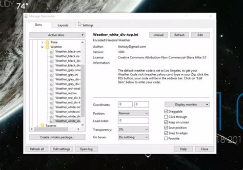 Open the Rainmeter skin’s configuration file (.ini). Find the section related to weather information. Replace the existing weather code with the one you obtained from your chosen weather provider. Save the file and refresh the skin in Rainmeter. Integrating the weather code into your Rainmeter skin is the final step in displaying accurate weather information on your desktop. Once you’ve obtained the correct weather code from your chosen provider, you’ll need to incorporate it into the skin’s configuration file (.ini). This file contains all the settings and parameters that define how your Rainmeter skin looks and functions. To integrate the weather code, open the .ini file in a text editor and locate the section related to weather information. This section may be labeled as “[Weather]” or something similar. Within this section, you’ll find a line that specifies the current weather code. Replace this line with the weather code you obtained from your provider. Make sure to save the changes to the .ini file. After saving the file, you’ll need to refresh the skin in Rainmeter for the changes to take effect. This can be done by right-clicking on the Rainmeter icon in the system tray and selecting “Refresh All.” Once the skin is refreshed, it should start displaying weather information based on the new weather code. If everything is configured correctly, you’ll see accurate and up-to-date weather conditions, forecasts, and other relevant data directly on your desktop. By following these steps, you can seamlessly integrate weather information into your Rainmeter skins and create a personalized and informative desktop environment.