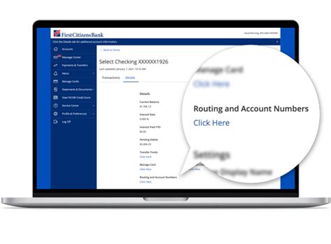 • Mobile Banking App : Most banks, including First Citizens, provide this information via their mobile app. Check your account details within the app to find your routing number.