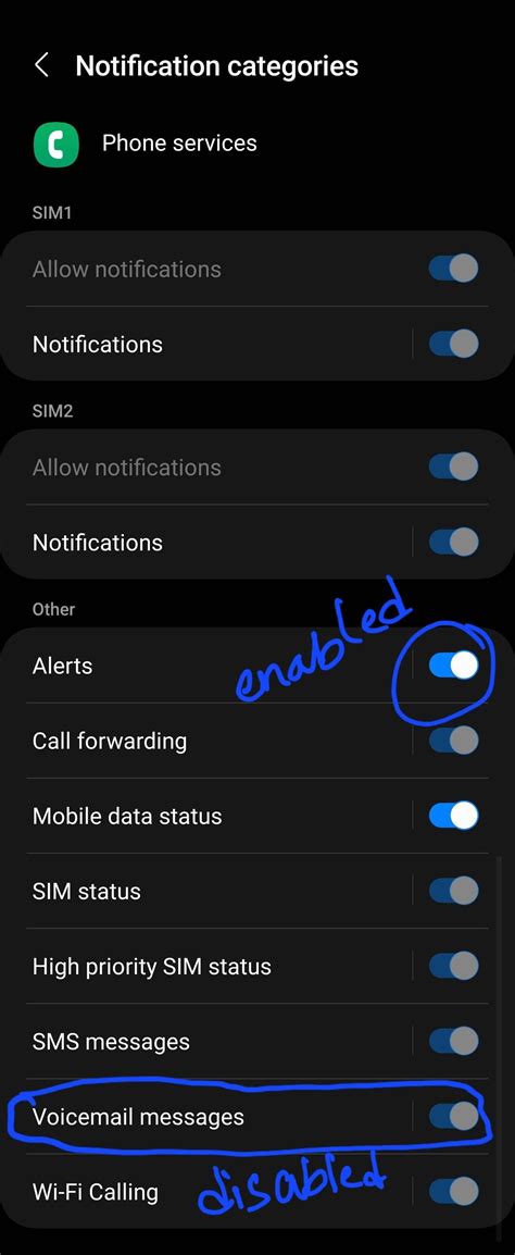 • Look for a category related to Voicemail or Call Notifications . Make sure this is also enabled. You might see options like “Alerts” or “Silent Notifications.” Choose the option that provides the alert style you prefer.