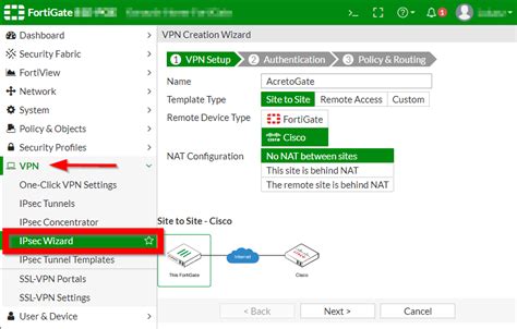 Let’s walk through a conceptual step-by-step example of setting up a site-to-site IPsec VPN between two Fortigate firewalls. Imagine you have Fortigate A (Office 1) and Fortigate B (Office 2).