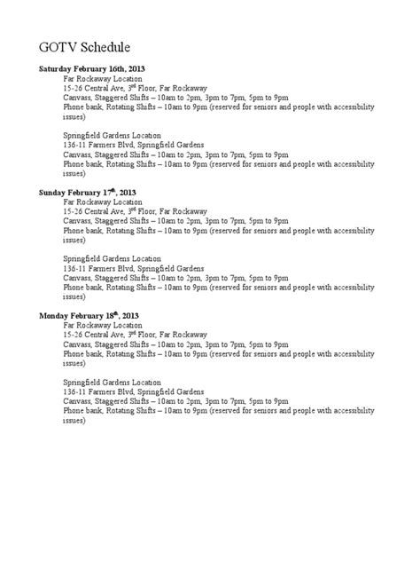 Unveiling the GOTV Schedule