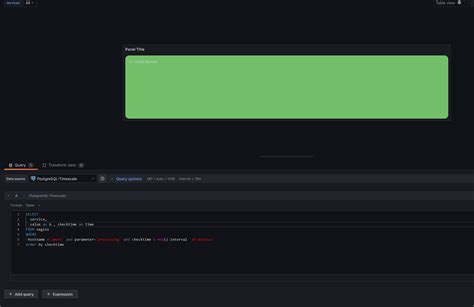 1. Create or Edit a Dashboard: Navigate to the dashboard where you want to add your status panel. You can either create a new dashboard or add it to an existing one. Click the ‘Add Panel’ button (usually a plus icon in the top bar) or click ‘Edit’ on an existing panel if you want to replace it.