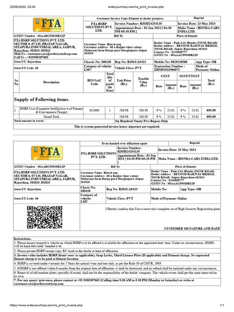 Lastly, keeping your HSRP invoice organized can save you headaches down the road. Whether you need it for transferring vehicle ownership, re-registering your vehicle in a different state, or any other official procedure, having the invoice readily available will make your life much easier. Trust me, future you will thank you for not tossing it into the abyss of forgotten documents!