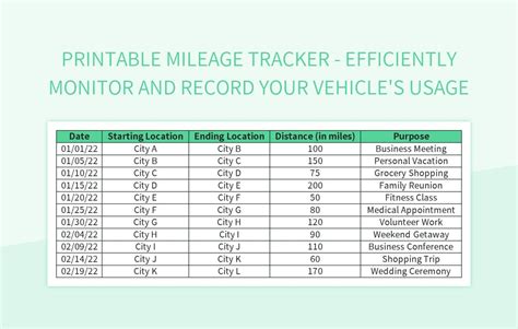 4. Categorize Trips: Classify each trip based on its purpose, such as business, personal, or medical. This categorization is essential for accurate reporting and tax compliance.