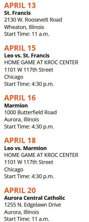 • Day of the Week: Often, schedules will include the day of the week, which can help you quickly scan the schedule and see which days games are planned.