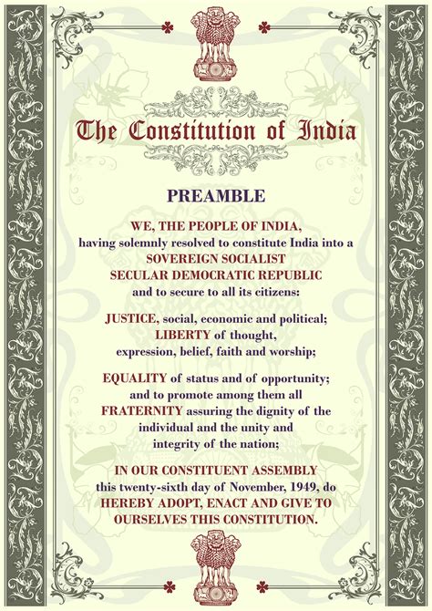 The Preamble of the Indian Constitution serves as a guiding light, setting forth the principles and objectives that the nation strives to achieve. It embodies the spirit of the freedom struggle and the aspirations of the people of India. The Preamble declares India to be a Sovereign, Socialist, Secular, Democratic, Republic and secures to all its citizens justice, liberty, equality, and fraternity. Each of these terms carries profound meaning and significance, reflecting the core values upon which the Indian nation is founded. The Preamble is not merely a statement of intent; it is a solemn pledge to uphold the ideals of justice, liberty, equality, and fraternity for all citizens. It serves as a constant reminder of the principles that should guide the actions of the government and the conduct of individuals. Understanding the Preamble is essential for every citizen of India, as it provides a framework for interpreting the Constitution and understanding the rights and responsibilities of citizenship. It is a living document that evolves with the changing needs and aspirations of the nation, ensuring that the Constitution remains relevant and responsive to the challenges of the modern world. It is a testament to the vision and foresight of the framers of the Constitution, who sought to create a nation that is just, equitable, and free. The Preamble serves as a beacon of hope and inspiration, guiding India on its journey towards a brighter future. Let’s explore the historical context and philosophical underpinnings of the Preamble, examining its significance in shaping the identity and destiny of the Indian nation.