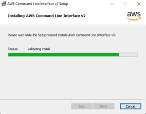 Copy and paste this command into your Command Prompt and press Enter. The AWS CLI installer should start. Follow the on-screen prompts to complete the installation. Generally, you’ll just need to click through the prompts, accepting the default settings.