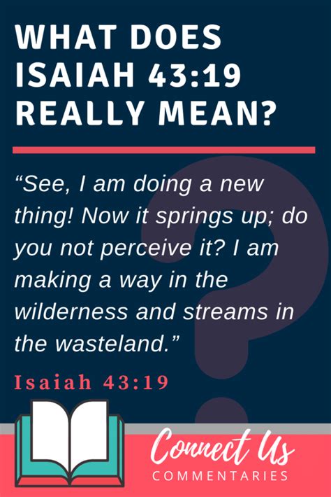 Guys, this verse isn’t just some poetic words; it’s a powerful declaration of God’s faithfulness and His incredible ability to bring about transformation, even in the most unlikely of circumstances. When we look at the meaning of Isaiah 43:19 KJV , we’re talking about a divine intervention, a fresh start, and the assurance that God is actively working in our lives, often in ways we might not immediately recognize. It’s a promise that speaks directly to those feeling lost, barren, or stuck in a difficult situation. Think about it: a way in the wilderness, rivers in the desert – these are images of life where there seems to be none. It’s about God bringing hope and sustenance where despair once reigned. This verse challenges us to open our eyes and our hearts to perceive the “new thing” He is doing. It’s a call to active faith, to look for God’s hand even when the landscape seems impossible. So, whether you’re going through a personal struggle, a spiritual dry spell, or just need a reminder of God’s power, this verse is a beacon of light, assuring you that God’s new beginnings are always on the horizon . It’s a message that resonates through the ages, offering comfort and strength to believers facing all sorts of challenges.
