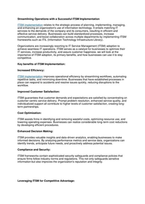 So, why should you guys care about IT Service Management (ITSM) ? In today’s fast-paced digital world, IT isn’t just a support function; it’s a critical enabler of business success. If your IT operations are clunky, inefficient, or unreliable, it can seriously hold your business back. That’s where ITSM shines. One of the biggest benefits is improved efficiency and productivity . By standardizing processes and automating repetitive tasks, ITSM frees up your IT staff to focus on more strategic initiatives rather than getting bogged down in day-to-day firefighting. Imagine your team having more time to innovate instead of just fixing things! Another huge plus is enhanced customer satisfaction . When IT services are delivered reliably and issues are resolved quickly, your users (both internal and external) are happier. This leads to better employee morale and, if you’re customer-facing, stronger customer loyalty. Cost reduction is also a massive driver for ITSM adoption. By optimizing resource utilization, reducing downtime, and preventing costly errors, ITSM helps businesses save serious money. Think about the cost of a major system outage – ITSM practices are designed to minimize or eliminate those risks. Furthermore, better risk management and compliance are key. ITSM frameworks often incorporate best practices for security and data protection, helping you meet regulatory requirements and avoid hefty fines. It provides a structured way to manage changes, ensuring that your IT environment remains stable and secure. Ultimately, better alignment between IT and the business is the holy grail. ITSM ensures that IT investments and services directly support business goals, making IT a true strategic partner rather than just a cost center. In essence, implementing ITSM isn’t just about making your IT department run better; it’s about making your entire business run better, faster, and more effectively. It’s an investment that pays dividends across the board, enabling agility, resilience, and continuous improvement in an ever-evolving business landscape. Guys, if you’re not thinking about ITSM, you’re probably leaving value on the table.
