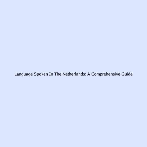 Language Spoken In The Netherlands: A Comprehensive Guide