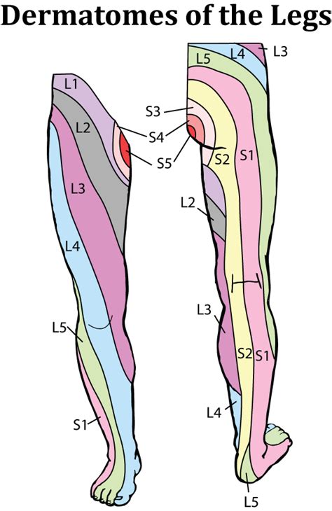 Ah, L5, another major player! The L5 dermatome covers a broad area, including the lateral (outer) aspect of the leg, the dorsum (top) of the foot, and the big toe . If you have numbness or tingling on the outer calf, the top of your foot, or your big toe, L5 is a prime suspect. This is one of the most frequently affected nerve roots in conditions like herniated discs.
