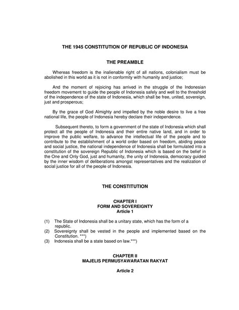 In conclusion, the manifestation within the UUD NRI 1945 is a testament to Indonesia’s commitment to its national ideals, fundamental rights, and adaptability. By understanding these manifestations, we can gain a deeper appreciation for the constitution’s significance and its role in shaping the nation’s future. It is imperative for every Indonesian citizen to actively engage with the constitution, ensuring that its principles are upheld and that Indonesia continues to strive towards a just, prosperous, and democratic society.