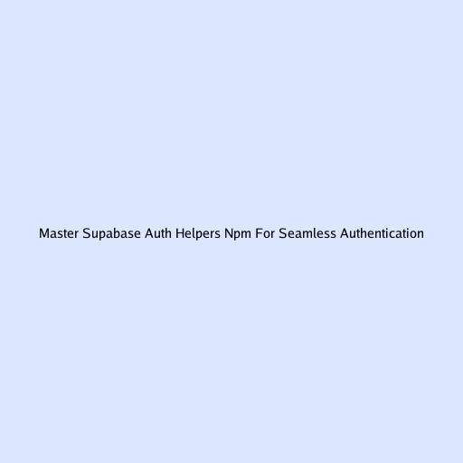 Master Supabase Auth Helpers Npm For Seamless Authentication