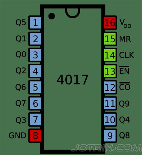 Let’s get down to the nitty-gritty of the IC 4017 decade counter ’s pinout. It typically comes in a 16-pin Dual In-line Package (DIP), making it easy to plug into breadboards or solder onto PCBs. Here’s a quick rundown of the essential pins you’ll be working with: