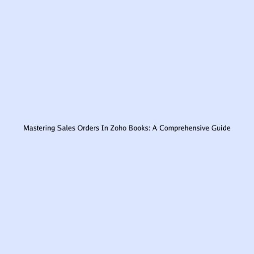Mastering Sales Orders In Zoho Books: A Comprehensive Guide