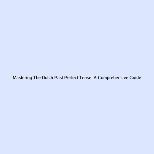 Mastering the Dutch Past Perfect Tense: A Comprehensive Guide