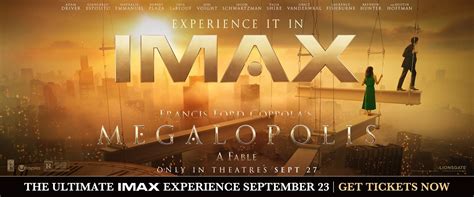 Now, let’s talk about the IMAX experience . If you’re planning to see Megalopolis , and trust me, you should, you absolutely have to consider watching it in IMAX. Why? Because IMAX elevates the film to a whole new level. The immersive environment, with its massive screen, crystal-clear image, and powerful sound system, transforms the viewing experience. It’s not just about watching a movie; it’s about being in the movie. The IMAX format is designed to provide an unparalleled cinematic experience. From the enhanced visuals to the carefully calibrated audio, every element is optimized to transport the viewer to the world on screen. With Megalopolis , this immersive aspect takes on extra significance. Given the film’s ambition and scope, the IMAX format could amplify the impact of Coppola’s vision. The larger-than-life visuals of IMAX will provide a perfect canvas for the architectural marvels, the sweeping cityscapes, and the intricate details that Coppola has crafted. The scale and spectacle of Megalopolis will be amplified by the IMAX screen. Think about it: the grandeur of a rebuilt New York City, the dramatic events, and the emotional resonance of the characters will be even more impactful when experienced on a massive IMAX screen. The benefits of IMAX go beyond visual presentation.