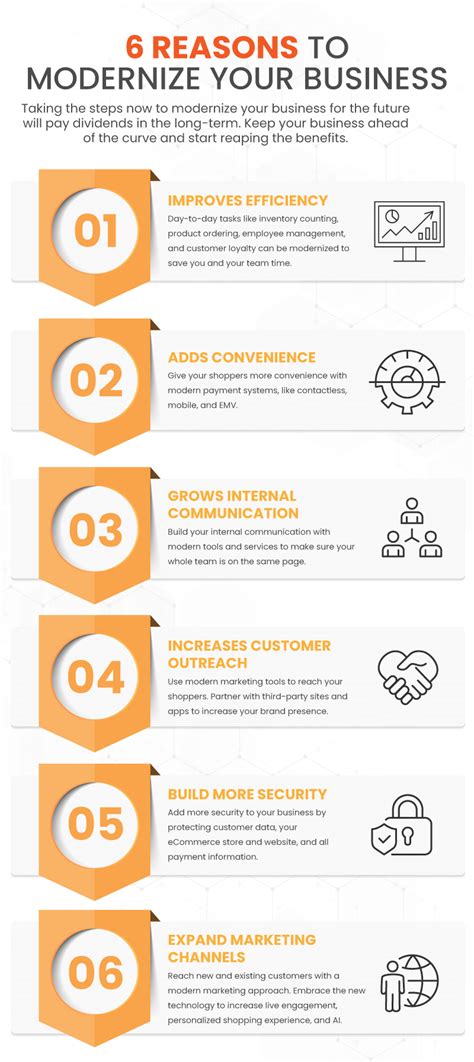 Hey guys, let’s talk about modernizing your business ! In today’s fast-paced world, staying stuck in the past is a surefire way to get left behind. It’s not just about having the latest gadgets; it’s about fundamentally rethinking how you operate, serve your customers, and stay competitive. Think of it as giving your business a much-needed glow-up. We’re talking about embracing new technologies, adapting your strategies, and creating a more agile, efficient, and customer-centric organization. This isn’t a one-time fix; it’s an ongoing commitment to growth and relevance. Modernizing your business means looking critically at every aspect of your operations – from your internal processes to your customer interactions – and asking, “How can we do this better?” It involves a willingness to shed old habits, invest in new tools, and foster a culture of continuous improvement. The benefits are huge: increased efficiency, reduced costs, enhanced customer satisfaction, and a stronger competitive edge. So, buckle up, because we’re diving deep into what it takes to modernize your business and thrive in the digital age. We’ll cover everything from understanding the core principles of modernization to practical steps you can take right now. Whether you’re a small startup or a seasoned enterprise, the need to evolve is constant. Let’s get started on this exciting journey to transform your business and set it up for long-term success. It’s all about staying ahead of the curve and ensuring your business remains not just relevant, but leading in its industry. This guide will equip you with the knowledge and inspiration to make those crucial changes. Remember, the future of your business depends on the actions you take today. So, let’s get this modernization party started!