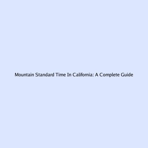 Mountain Standard Time In California: A Complete Guide