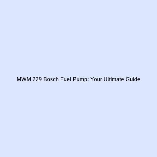 MWM 229 Bosch Fuel Pump: Your Ultimate Guide