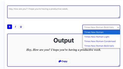 3. Choose Your Font: Most generators will have a dropdown menu where you can select the Times New Roman font. If it’s not immediately visible, look for a search bar or filter option.
