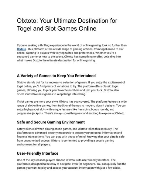 So, there you have it, folks! OSC98TOTO is a fantastic platform for anyone looking to get into the exciting world of online togel . With its easy OSC98TOTO login process, various link alternatives , and a commitment to security and user satisfaction, it’s a top choice. Remember to gamble responsibly, do your research, and most importantly, have fun! Whether you’re a seasoned player or a newbie, OSC98TOTO offers everything you need for a thrilling and rewarding togel experience. Get ready to explore a world of opportunities and, of course, the chance to win big. Good luck, and happy playing!