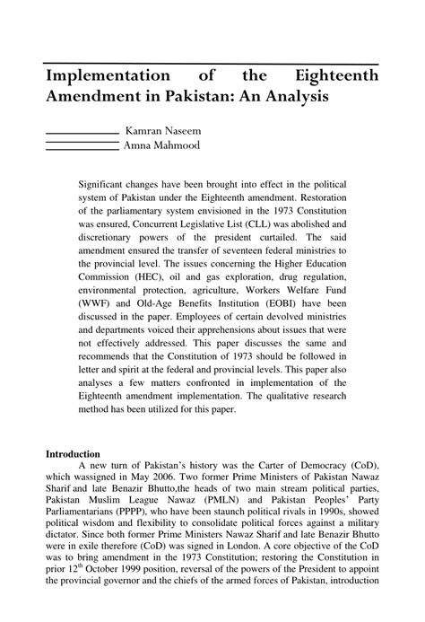 The 18th Amendment to the Constitution of Pakistan didn’t just appear out of thin air. It was a direct response to decades of political struggle and a yearning for greater provincial autonomy. For a long time, especially under various military dictatorships, power in Pakistan was heavily concentrated in the hands of the federal government. This often led to feelings of marginalization and neglect in the provinces, fueling separatist sentiments and a general distrust of the central administration. The 2009 Charter of Democracy , a landmark agreement between the Pakistan Peoples Party (PPP) and the Pakistan Muslim League-N (PML-N), laid the groundwork for significant constitutional reforms. This charter recognized the need to reverse the trend of over-centralization and strengthen the federal system. The 18th Amendment was the tangible outcome of these aspirations, aiming to rectify historical grievances and establish a more equitable power-sharing arrangement. It was a bold move, seeking to address the deep-seated issues of provincial disparity and empower the federating units. The amendment sought to democratize the state further by devolving powers and resources, a move widely hailed as a crucial step towards national reconciliation and stability. It was a complex process, involving extensive debates and negotiations among political stakeholders, reflecting the diverse interests and concerns across the country. The ultimate goal was to create a more inclusive and participatory political system, where the voice of every province would be heard and respected. This was a crucial moment, not just for constitutional law, but for the very fabric of Pakistani society, marking a definitive departure from the centralized legacy of the past.