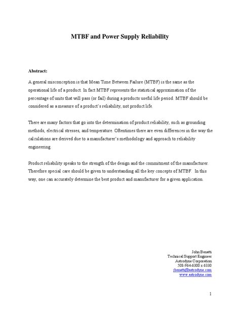 Alright, so we know MTBF stands for Mean Time Between Failures , but let’s get a bit more technical about how this number is actually determined. It’s not just a random guess; manufacturers typically calculate MTBF based on a combination of component-level reliability data and system-level testing . The general idea is to predict the average time a component or system is expected to operate without failing . When we talk about power supplies, this usually refers to the time it operates before it needs a repair or replacement. A common way MTBF is expressed is in hours . So, you might see a PSU with an MTBF of 100,000 hours, or even 500,000 hours. This doesn’t mean the PSU will definitely fail after exactly 100,000 hours; it’s a statistical average. To arrive at this figure, manufacturers often use a formula derived from the Bellcore reliability standards or similar industry-accepted methodologies. This involves analyzing the failure rates of individual components within the power supply, such as capacitors, transistors, diodes, and transformers. Each component has its own known or estimated failure rate, often expressed as FIT (Failures In Time), which represents the number of failures expected per billion device-hours. The failure rates of these individual components are then summed up, and this total failure rate is used to calculate the MTBF. For instance, if the sum of the FITs for all components in a PSU results in a total failure rate of 10 FITs, then the MTBF would be calculated as (1 billion device-hours) / 10 FITs = 100,000,000 hours. However, this is a simplified view. Real-world MTBF calculations are more complex and often involve accelerated life testing. This means running the power supply under strenuous conditions (higher temperatures, higher loads) for extended periods to simulate years of use in a much shorter timeframe. The data gathered from these tests, combined with component data, allows manufacturers to project a more realistic MTBF. It’s essential to remember that MTBF figures are usually derived under ideal laboratory conditions and specific operating parameters. Environmental factors like ambient temperature, dust buildup, and electrical surges can significantly impact the actual lifespan of a power supply in your specific setup. So, while a high MTBF is a great indicator, it’s not a crystal ball predicting exact failure times.