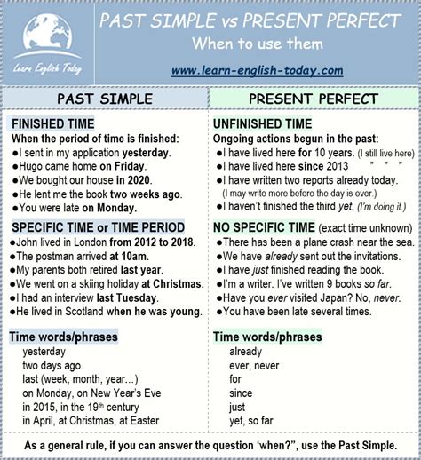Alright, guys, this is the moment of truth! When do you use the past simple, and when do you reach for the present perfect? The biggest clue is usually the time expression or the context . If the sentence clearly indicates a finished past time , you’re almost certainly going to use the past simple . Think keywords like yesterday, last week, two years ago, in 2010, when I was a child . These all point to a specific, completed moment or period in the past.