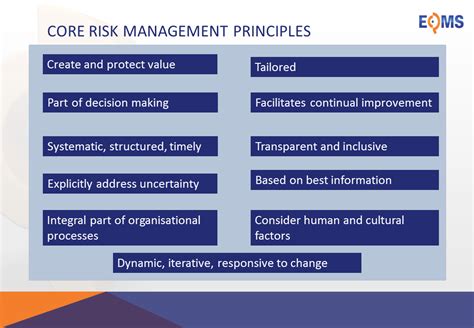 Beyond the core concepts, there are some fundamental principles of risk management that guide how we approach this whole process. These aren’t just nice-to-haves; they’re the bedrock upon which effective risk management is built. First and foremost, risk management should be integrated . It shouldn’t be a separate department or a bolt-on activity. It needs to be woven into the fabric of your organization’s decision-making processes at all levels. From setting strategic goals to managing daily operations, risk considerations should be an inherent part of the conversation. This integration ensures that potential downsides are considered alongside potential upsides when making any kind of decision, big or small. It fosters a culture where risk awareness is natural and expected, rather than an afterthought. When risk management is integrated, it becomes a strategic enabler, helping the organization achieve its objectives more effectively and efficiently by proactively addressing potential roadblocks.