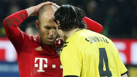 On the other side of this fascinating duel stood Neven Subotic , a defender who embodied strength, resilience, and tactical discipline . Subotic was not a defender who relied on fancy footwork or intricate passing from the back. Instead, his game was built on power, aerial dominance, and an almost impenetrable defensive presence . When Robben would inevitably cut inside, Subotic was often the last line of defense, tasked with nullifying the winger’s threat. His physicality was a key asset; he was strong in the tackle, rarely got beaten in a foot race despite Robben’s speed, and was a master of anticipating the play. Subotic had a remarkable ability to read the game , often positioning himself perfectly to intercept passes or block shots. His aerial ability was second to none, making him a vital asset not only in defending set-pieces but also in initiating attacks from deep. He was the kind of defender who defenders themselves admired – no-nonsense, effective, and always putting his body on the line for the team. The mental aspect of facing Robben was also something Subotic seemed to relish. While Robben’s dazzling runs could unnerve many, Subotic’s calm demeanor and unwavering focus allowed him to stay composed under pressure. He understood Robben’s tendencies and had the physical attributes to match them, often forcing the Dutch winger wide or making crucial last-ditch tackles. His leadership qualities on the pitch were also evident, organizing the defensive line and communicating effectively with his teammates. He was the rock upon which strong defenses were built, a player who consistently delivered top-level performances. The sheer determination and grit Subotic brought to every match were palpable. He was never afraid of a physical battle and consistently showed an incredible will to win individual duels. This mental fortitude, combined with his imposing physical presence, made him one of the most respected and feared defenders in the Bundesliga during his prime. He was the type of player who could frustrate even the most creative attackers, using his strength and positional intelligence to shut down space and deny opportunities. His presence alone could disrupt an opponent’s attacking rhythm, forcing them to rethink their approach. This made him the ideal foil for a player like Robben, whose game often revolved around exploiting small pockets of space and individual brilliance. Subotic’s ability to remain disciplined and focused, even when faced with Robben’s unpredictable brilliance, was a hallmark of his game. He represented the ultimate defensive challenge for any attacker, a true embodiment of a resolute and formidable center-back who commanded respect on the field.