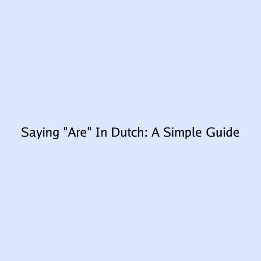 Saying “Are” in Dutch: A Simple Guide