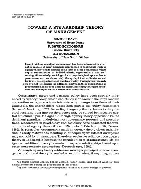 At its heart, stewardship theory posits that people are inherently trustworthy and motivated to act in the best interests of the organization they serve. This contrasts sharply with agency theory, which assumes that individuals are self-serving and require strict controls and monitoring. Under stewardship theory, employees are viewed as valuable assets who are capable of making sound decisions and contributing to the overall success of the company. They are more likely to be engaged, committed, and proactive when they feel trusted and empowered. Imagine a scenario where a company invests heavily in employee training and development, creating a culture of trust and autonomy. These employees, feeling valued and respected, are more likely to go the extra mile, innovate, and collaborate effectively. This leads to improved performance, increased efficiency, and a stronger bottom line for the organization. Stewardship theory emphasizes the importance of aligning employee goals with organizational goals, fostering a sense of shared purpose and collective responsibility. By creating an environment where employees feel ownership and accountability, organizations can unlock their full potential and achieve sustainable success. It’s about building a partnership between the organization and its employees, where both parties benefit from mutual trust, respect, and collaboration. This approach not only enhances performance but also creates a more positive and fulfilling work environment, leading to increased employee satisfaction and retention.