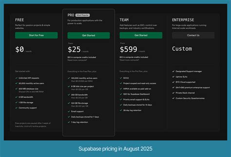 • Free Tier: This is your starting point, perfect for learning, personal projects, or small prototypes. You get access to the core features, but with limited resources. It’s a risk-free way to test the waters and see what Supabase can do for you. Great for small projects and learning.